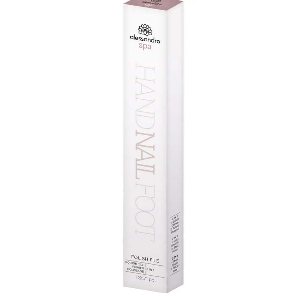 Die Alessandro Spa Polierfeile bringt die Nägel auf perfekten Hochglanz, mithilfe von zwei unterschiedlichen Oberflächen. Step 1: Zum Glätten & Step 2: Zum Polieren.