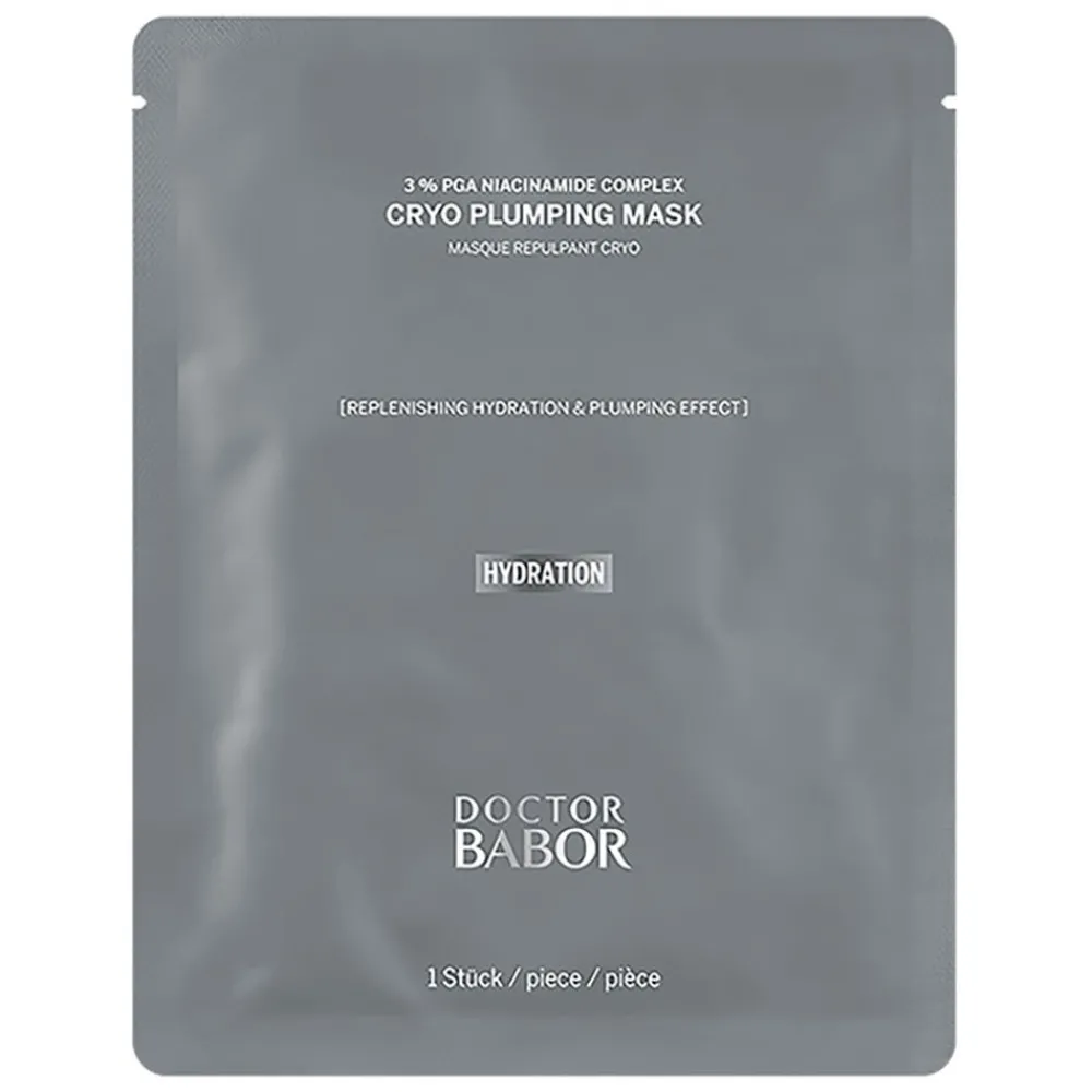 Die BABOR Cryo Plumping Mask sorgt für einen intensiven und langanhaltenden Feuchtigkeits-Boost. 5 Hyaluronsäure-Typen durchfeuchten die oberen Hautschichten. Polyglutaminsäure verstärkt den Effekt der Hyaluronsäure für eine noch intensivere Durchfeuchtung mit Plumping-Effekt. Centella Asiatica und Niacinamide unterstützen die Hautregeneration. Das Ergebnis: Reduzierte Faltentiefe und ein langanhaltender Feuchtigkeits-Effekt.
