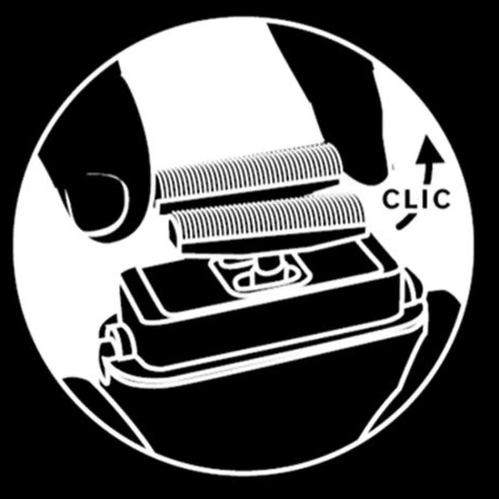 Um den Scherkopf auszuwechseln, den Rasierer ausschalten und den Knopf auf der gegenüberliegenden Seite zum Öffnen des Kopfteils drücken. Dann die alten Klingen entfernen und mit den neuen Klingen austauschen. Als letztes den Scherkopf anbringen und einrasten lassen. Vor der nächsten Nutzung überprüfen, ob der Rasierer ordnungsgemäß funktioniert.
