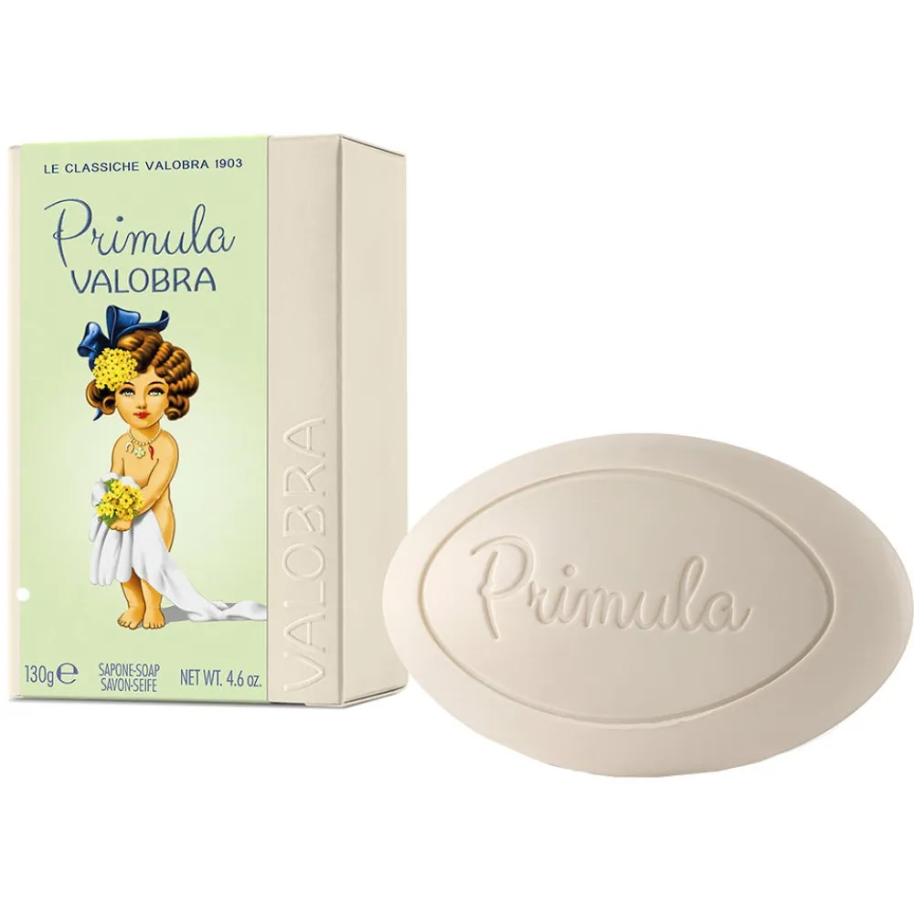 Die Valobra Blockseife Primula ist super reichhaltig und besonders sanft. Reisölcreme und eine Vitaminmischung reinigen die Haut sanft und machen sie weich. Besonders geeignet für Kleinkinder. Ihr raffinierter, zarter Duft enthält Primelblüten und aromatische Nuancen von Lavendel und Geranie.