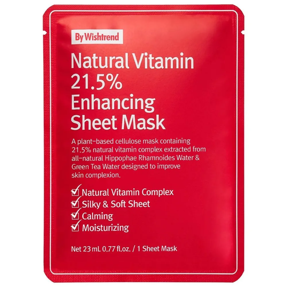 Die By Wishtrend Natural Vitamin Enhancing Sheet Mask ist mit einer hohen Konzentration an Vitaminen formuliert, um die Haut zu revitalisieren und den Hautton zu vereinheitlichen. Ihre einzigartigen Inhaltsstoffe bieten eine kraftvolle Mischung aus Antioxidantien und feuchtigkeitsspendenden Wirkstoffen, die die Haut erfrischen und zum Strahlen bringen.
