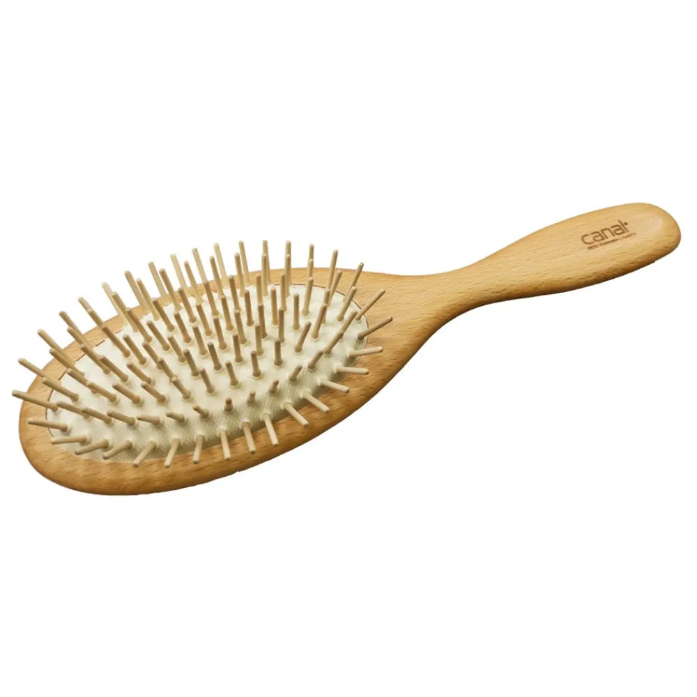 Die Canal Pneumatikbürste groß, antistatisch ist antistatisch, glättet und reinigt das Haar und hat Griffe aus heimischem, geöltem Buchenholz.