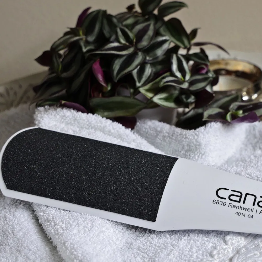 Die Canal Hornhautfeile „Fußschmeichler“ passt sich mit ihrer fußschmeichelnden und gebogenen Form perfekt dem Fuß an.