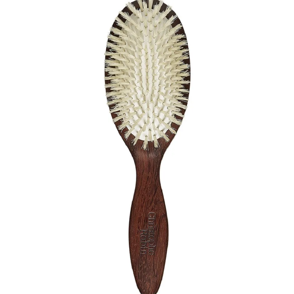 Die Christophe Robin Detangling Hairbrush ist eine in Frankreich handgefertigte Haarbürste mit natürlichen Wildschweinborsten, die alle Haartypen entwirrtEntwirren Sie Ihr Haar auf sanfte Weise. Diese Haarbürste besteht aus natürlichen Wildschweinborsten und Holz. Sie entwirrt, glättet und frisiert das Haar auf sanfte Weise. Wildschweinborsten sind für ihre haarähnliche Struktur bekannt und enthalten dieselbe Keratinverbindung, sodass sie ein sehr sanftes Kämmen ermöglichen und das Risiko von Haarschäden reduzieren. Durch regelmäßiges Kämmen werden die natürlichen Fette von den Wurzeln bis in die Spitzen verteilt. Dies schützt die Haarfaser vor schädlichen externen Faktoren.