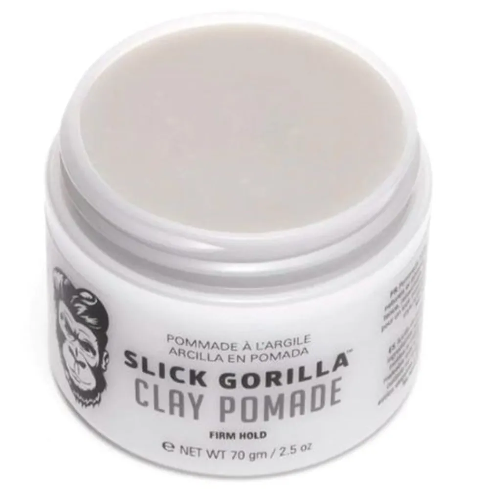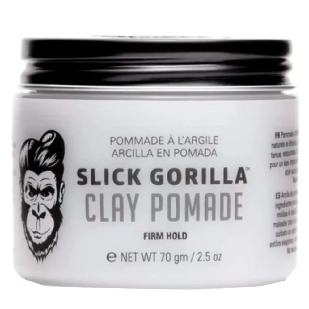 Die SLICK GORILLA Clay Pomade für fessten und flexiblen Halt mit einem glänzenden Finish.