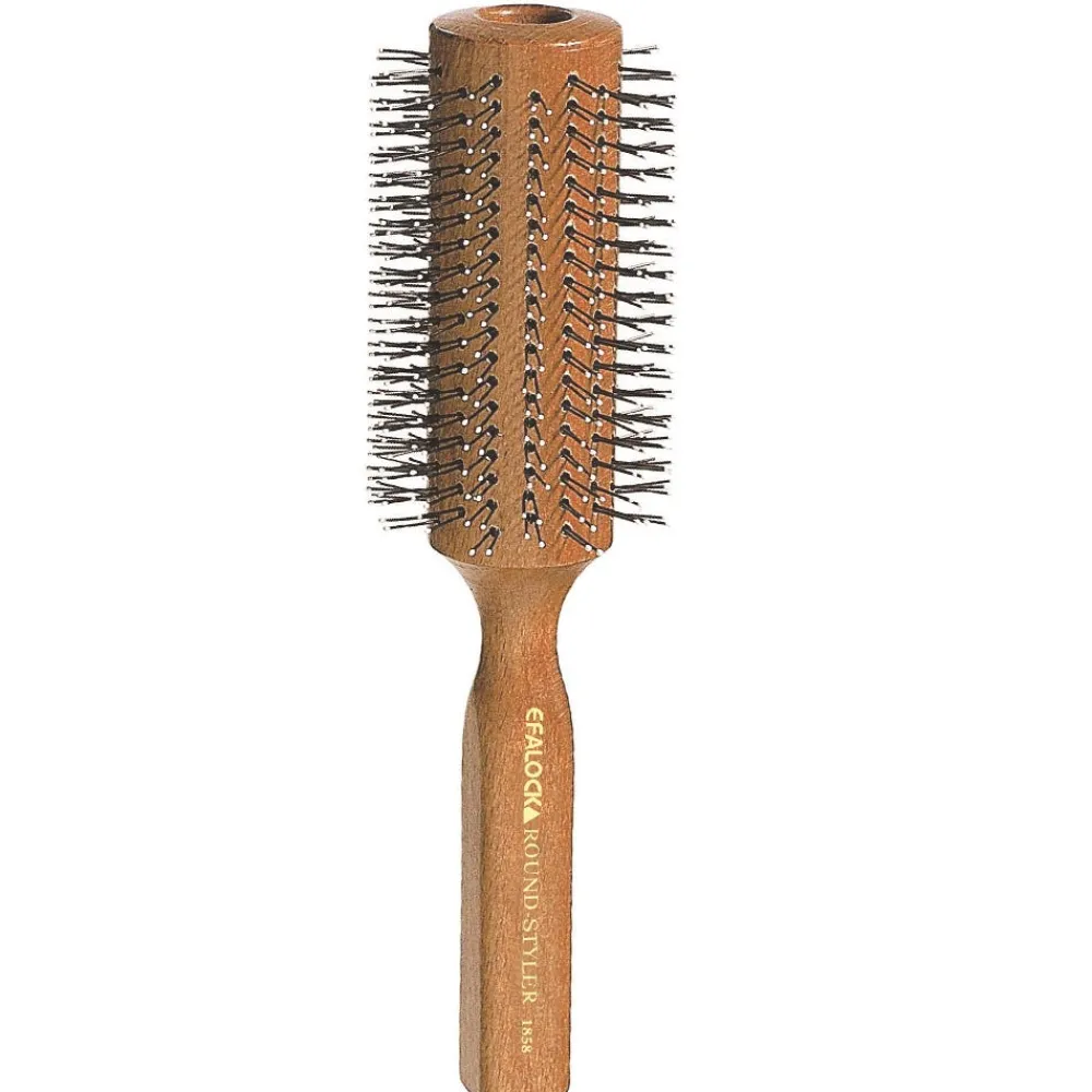 Die Efalock Round Styler 36/56 mm enthält einen Bürstenkörper aus Buchenholz mit Vierkantgriff. Die Nylonbürsten sind hitzebeständig.