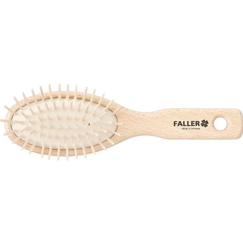 Die Faller Haarbürste kleiner Griff Holzstifte ist eine Pneumassagebürste mit Griff und Stiften aus Buchenholz.