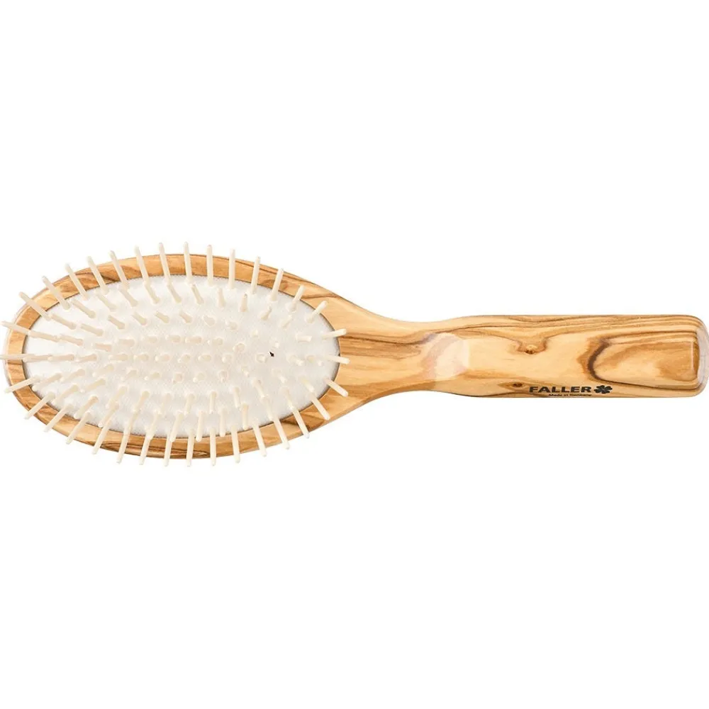 Die Faller Haarbürste Olivia großer Griff mit Holzstiften ist eine Pneumassagebürste aus Olivenholz mit Holzstiften.