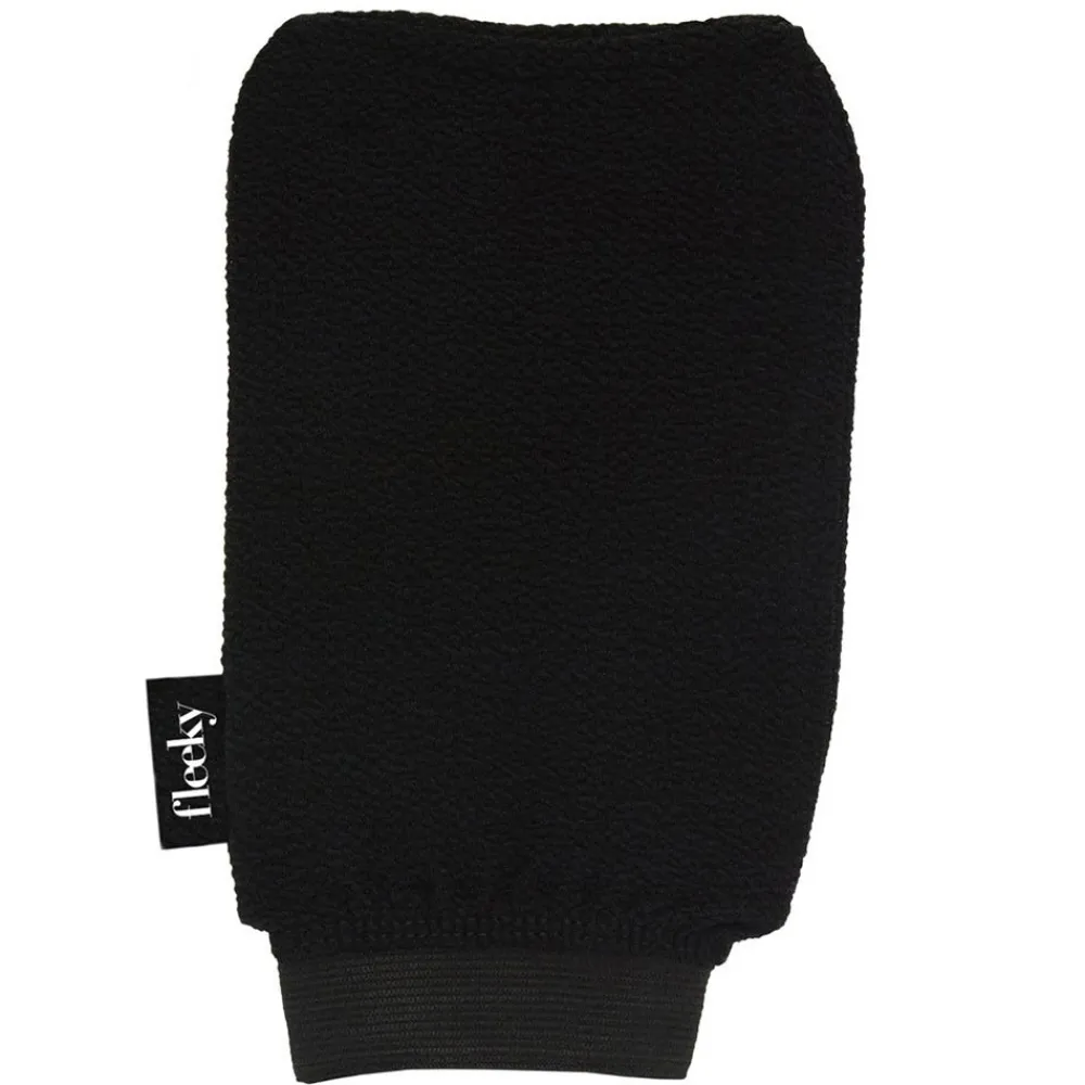 Der fleeky Bye Bye Tan Mitt Peeling Handschuh wirkt wie ein Radiergummi und entfernt Bräunungsreste von der Haut.