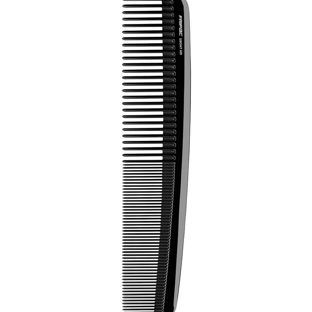 Der Fripac Ebonit Damenkamm 609 wird in Handarbeit aus hochwertigem, natürlichem Kautschuk hergestellt. Durch das aufwändige Verfahren der Vulkanisation entsteht ein extrem robuster und elastischer Werkstoff: Ebonit, das perfekte Material für den anspruchsvollen Profi.