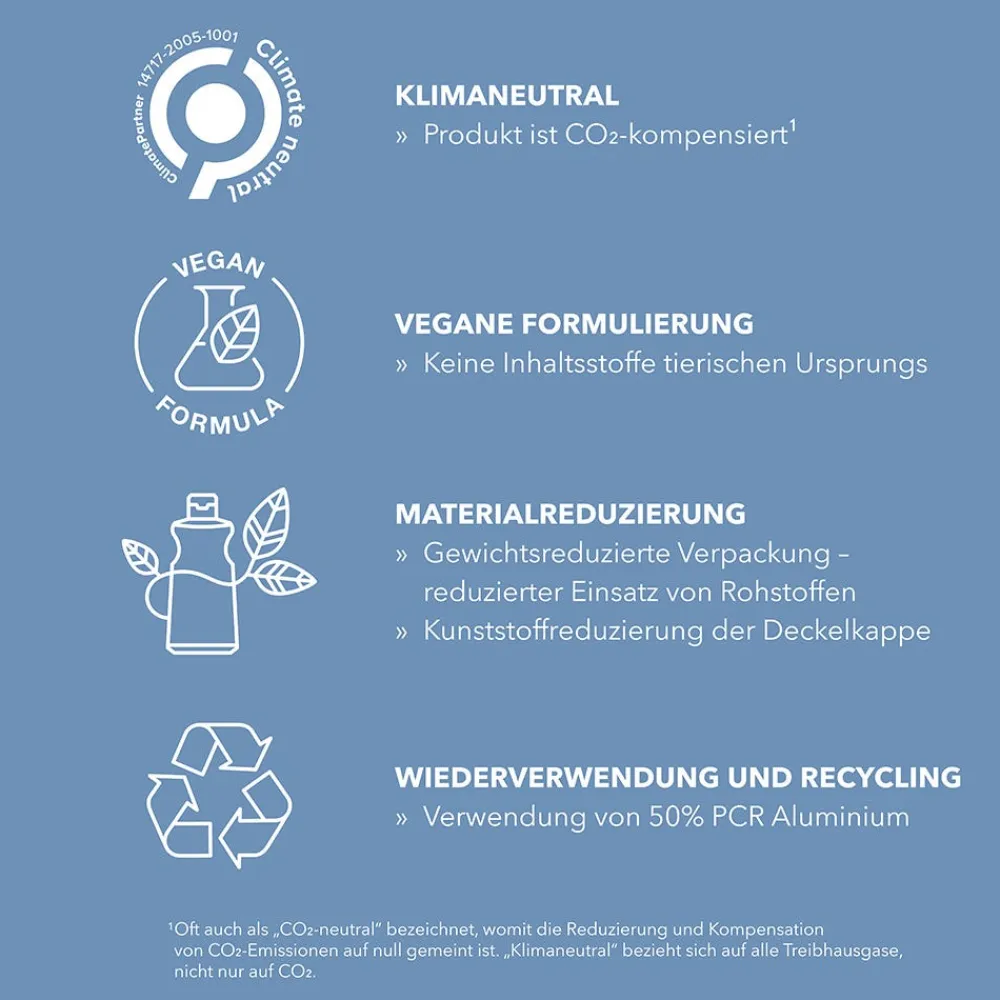 | Besonderheit | Dermatologisch getestet, Frei von Mineralöl, Keine tierischen Inhaltsstoffe, Sulfatfrei, Umweltfreundlich, Vegan |
