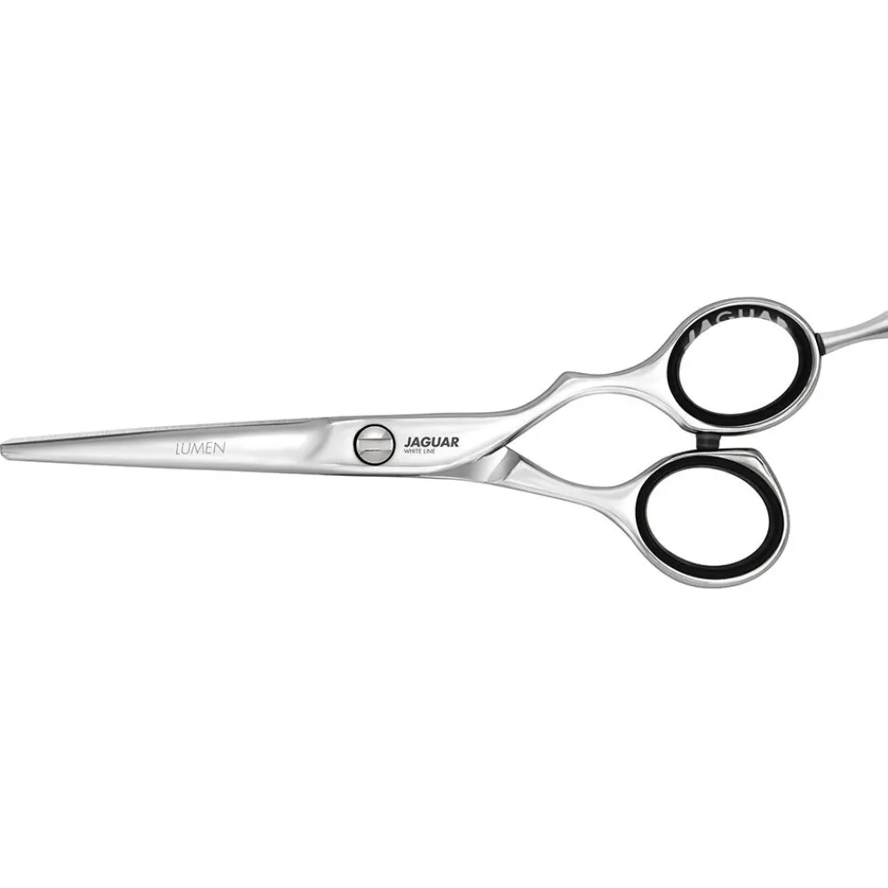 Die Jaguar Haarschneideschere Lumen 7,0 hat ein abgewinkeltes Daumenauge für entspanntes Arbeiten.
