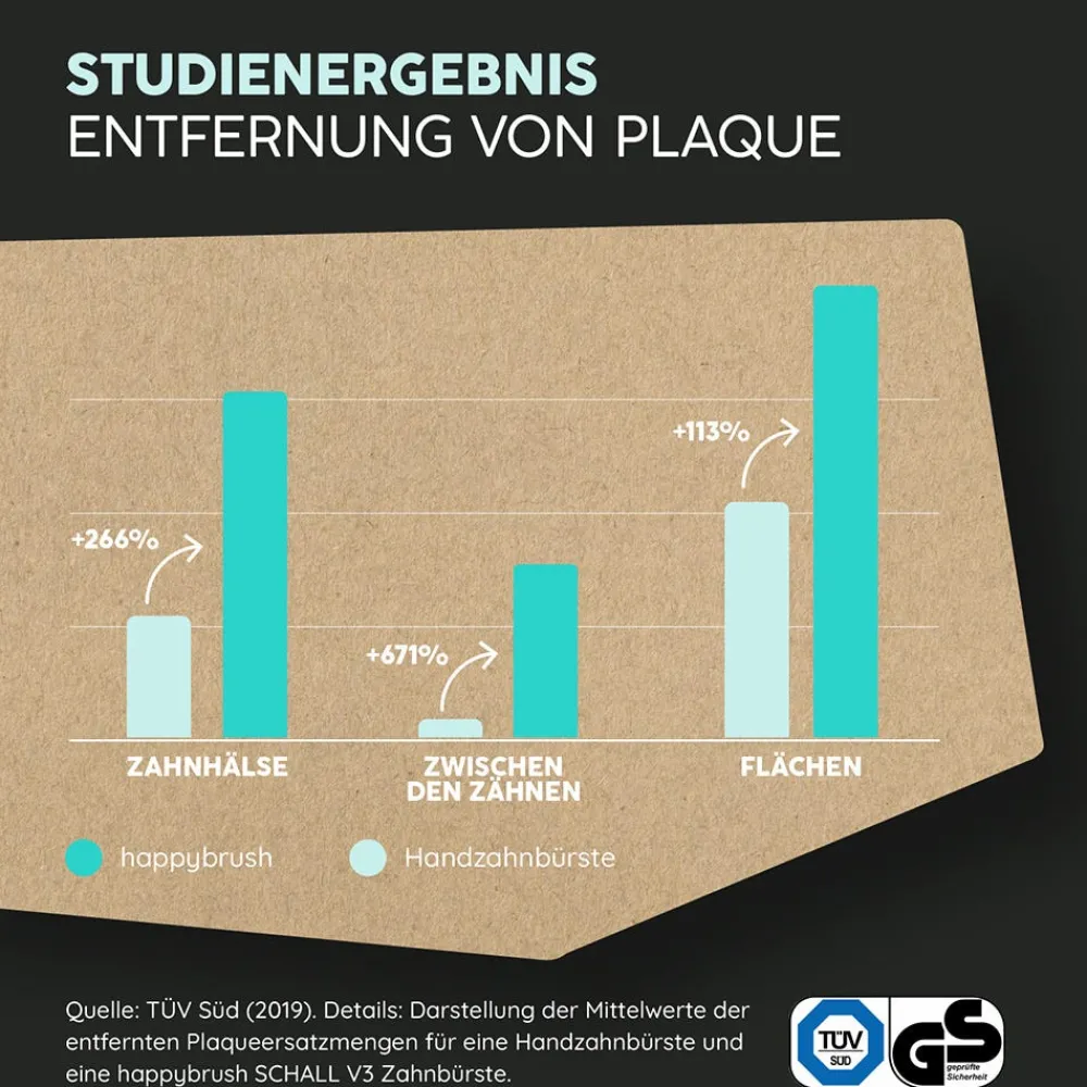 Die Happybrush ECO Vibe 3 ist eine nachhaltige Schallzahnbürste, die die Zähne gründlich und sanft reinigt. Die aus recyceltem Material gefertige Zahnbürste ist mit 3 Reinigungsmodi ausgestattet, für eine induviduelle Reinigung. Der Power-Akku der Zahnbürste hat eine Laufzeit von bis zu 6 Stunden. Mit bis zu 40.000 hoch-effektiven Vibrationen werden die Zähne besonders gründlich und zuverlässig gereingt.