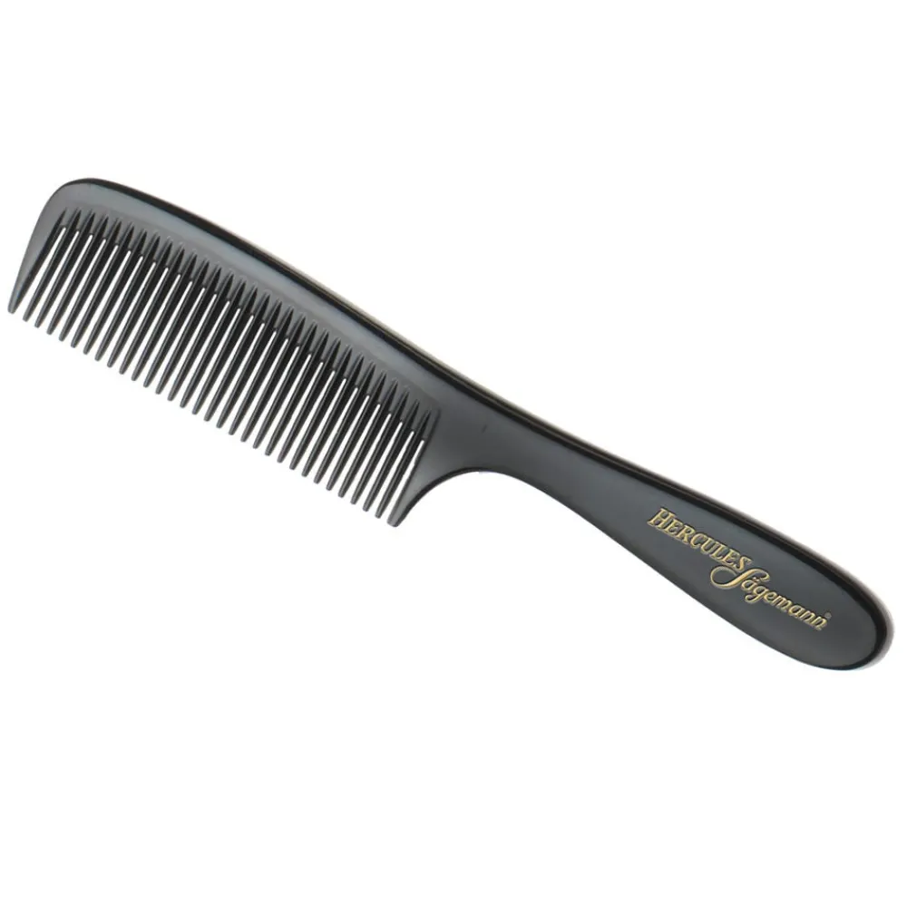 Der Hercules Sägemann Griffkamm 1930 besteht zu 100% aus Naturkautschuk mit handgesägten, gratfreien Zähnen. Daher ist er sanft zu Haar und Kopfhaut.
