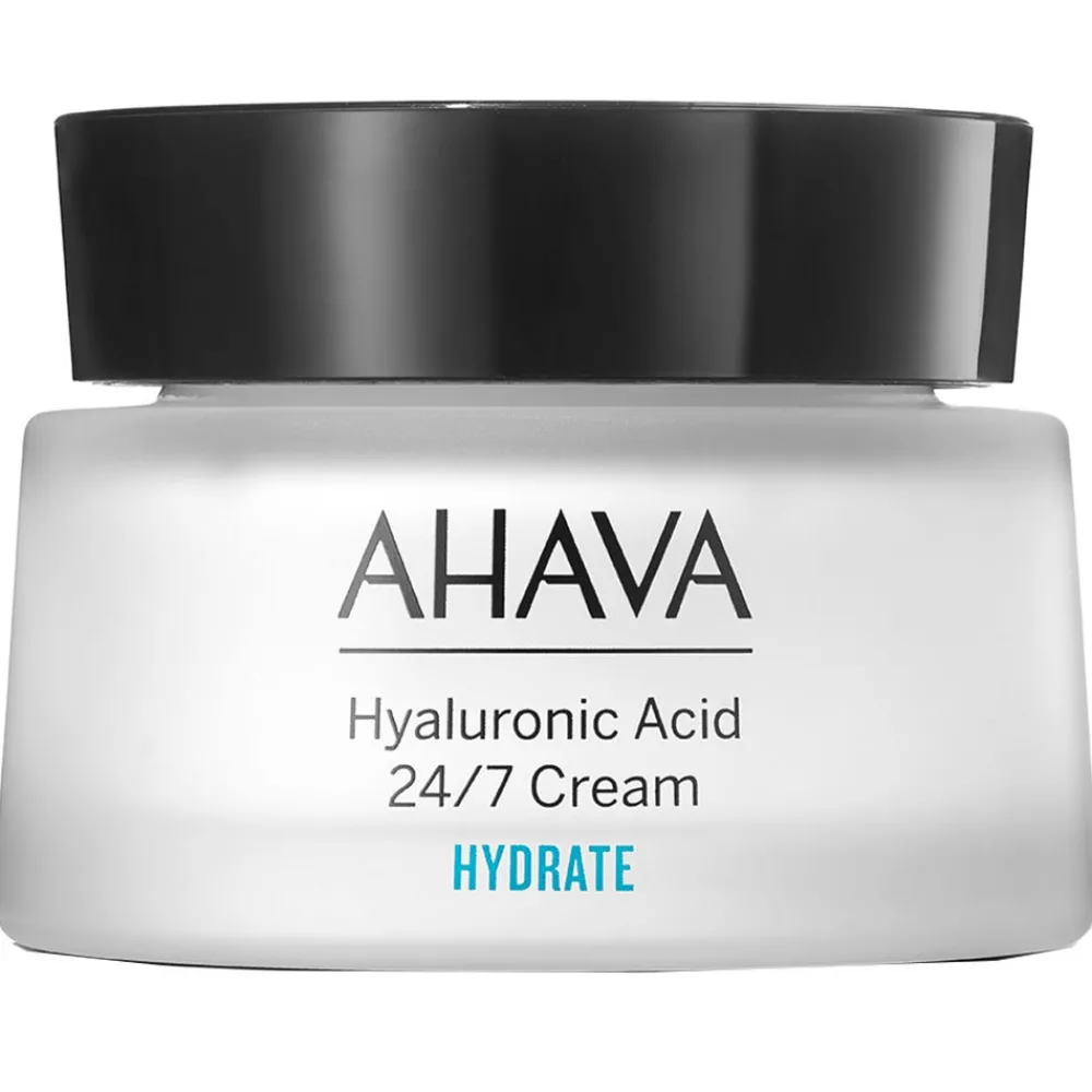 Die AHAVA Hyaluronic Acid 24/7 Cream enthält AHAVAs innovativen Osmoter™ – eine einzigartige Zusammenstellung von Mineralien aus dem Toten Meer, welche die Hyaluronsäureproduktion in der Haut nachweislich verbessern können sowie Hyaluronsäure unterschiedlicher Molekülmassen. Diese hochwirksame Kombination fängt zusätzliche Feuchtigkeit in der Haut ein und sorgt für eine glatte, geschmeidige und pralle Hautoberfläche, die rund um die Uhr spürbar ist. Dehydrierte Linien werden geglättet und somit langfristig Falten vorgebeugt.