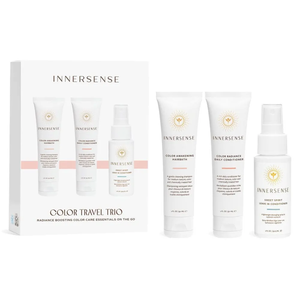 Das INNERSENSE Colour Travel Trio ist die optimale Pflege für coloriertes Haar. Das Set beinhaltet das INNERSENSE Color Awakening Hairbath, den INNERSENSE Color Radiance Daily Conditioner und den INNERSENSE Sweet Spirit Leave In Conditioner.