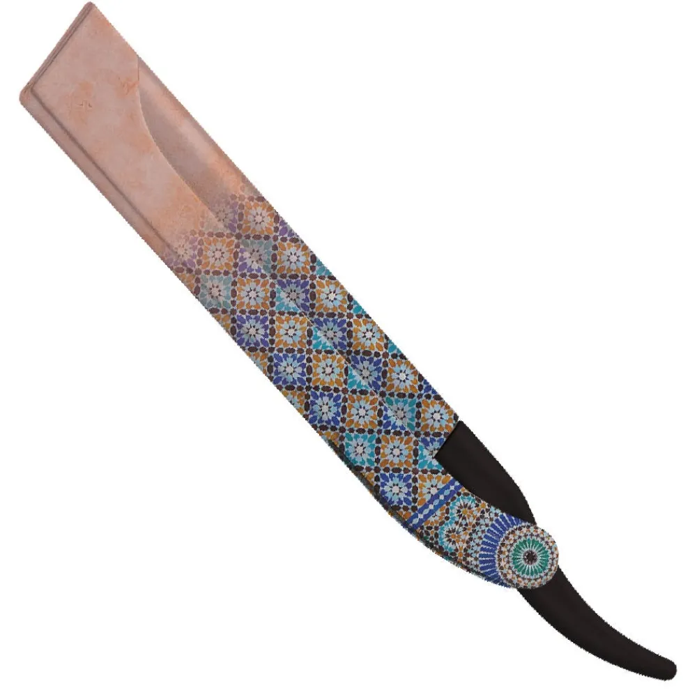 Die orientalischen Muster auf Haarschere und Messer erinnern an die landestypische Keramik und entführen in eine Welt aus 1001 Nacht.