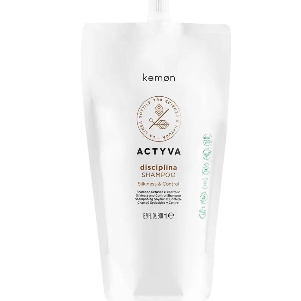 Die kemon Actyva Disciplina Shampoo Pouch Bag ist ein entwirrendes und feuchtigkeitsspendendes Shampoo für die tägliche Pflege von krausem und widerspenstigem Haar. Lockiges oder gewelltes Haar ist oft stumpf und borstig. Vor allem bei hoher Luftfeuchtigkeit verliert es oft an Form oder beginnt aufzuquellen. Die Disciplina-Serie von Kemon versorgt das Haar so mit Feuchtigkeit, dass es entweder perfekt geglättet oder natürlich in Bewegung gebracht werden kann. Das Pflege-Shampoo von Kemon reinigt das Haar und berücksichtigt dabei das natürliche Gleichgewicht der Kopfhaut. Durch die feuchtigkeitsspendende Haarwäsche werden die Haare seidig und leicht frisierbar.