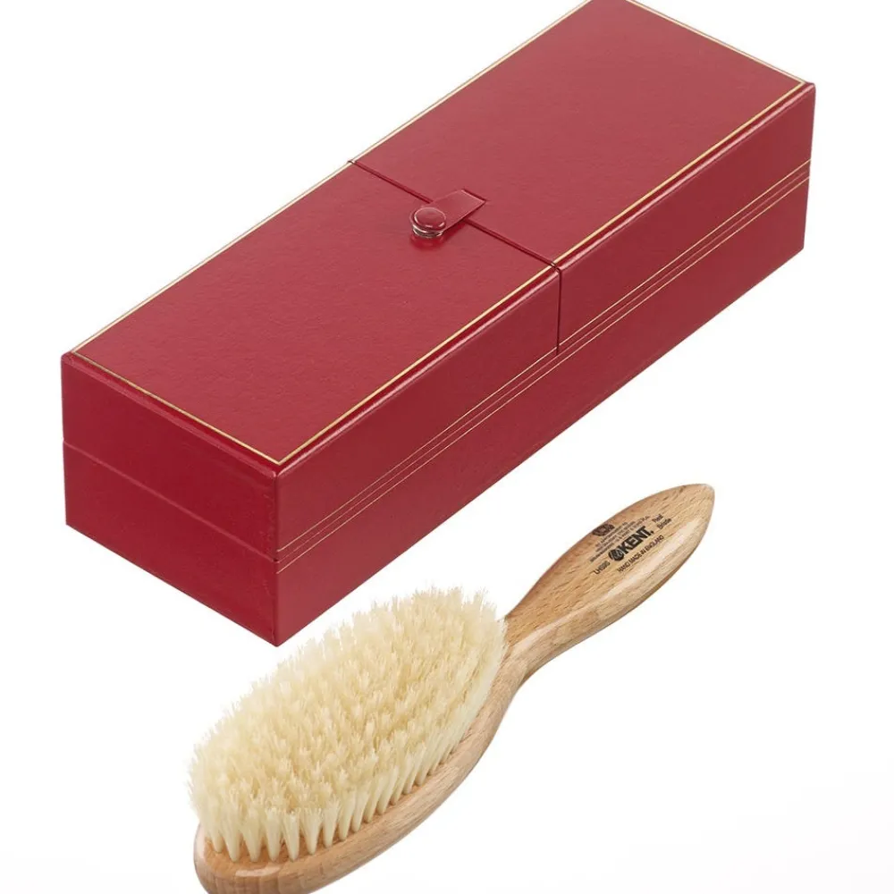 KENT Luxus Damen-Bürste 8-reihig – Elegante, ovale Luxus-Haarbürste aus Satinholz mit reinen weißen Racine-Wildschweinborsten – stilvoll verpackt im Geschenkkarton.