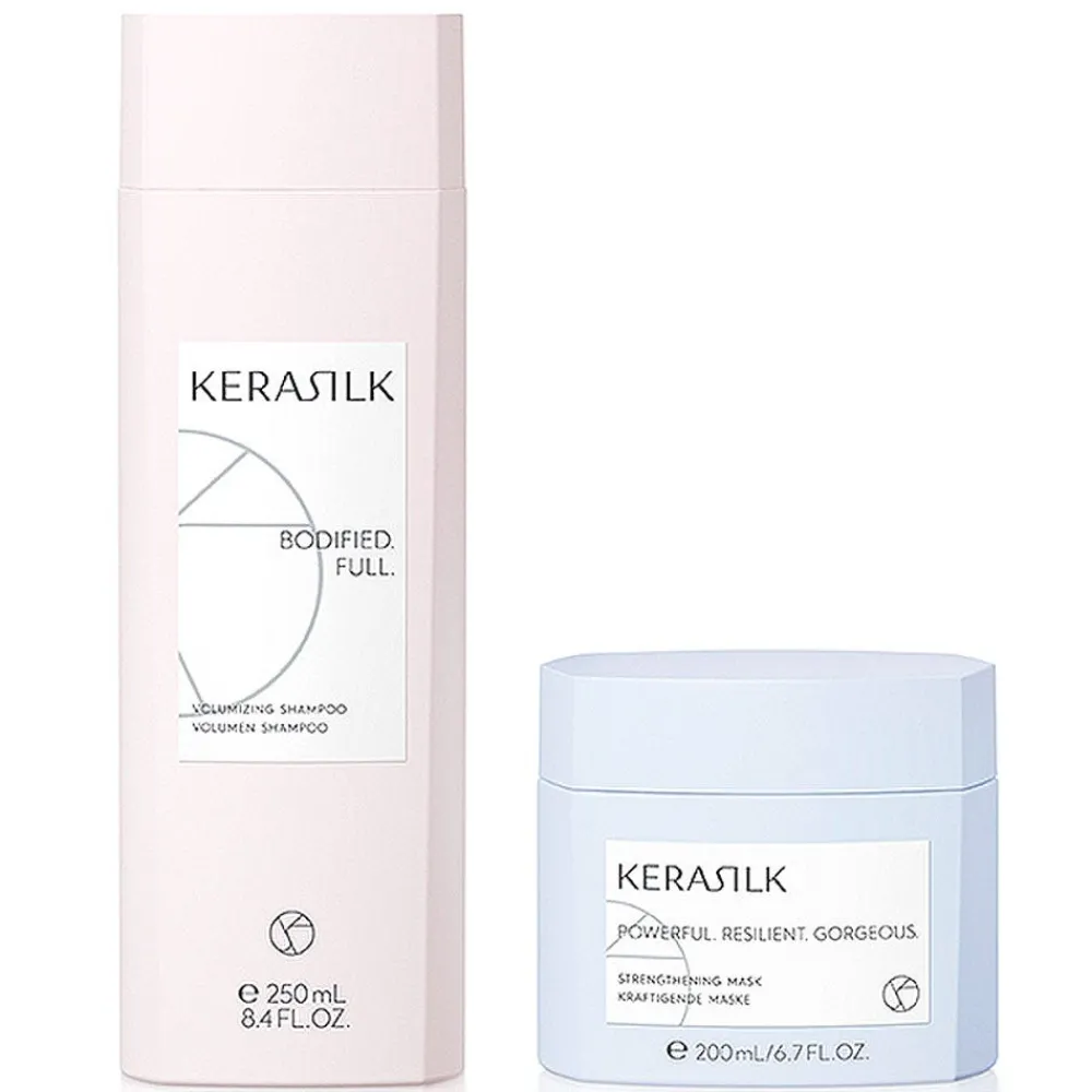 Das Kerasilk Kräftigendes Set ist ein 2-teiliges Haarpflegeset, das dem Haar Kraft und Volumen verleiht. Das Set ist zusammengesetzt aus einem sanft reinigendem, volumengebendem Shampoo und einer kräftigenden Haarmaske.