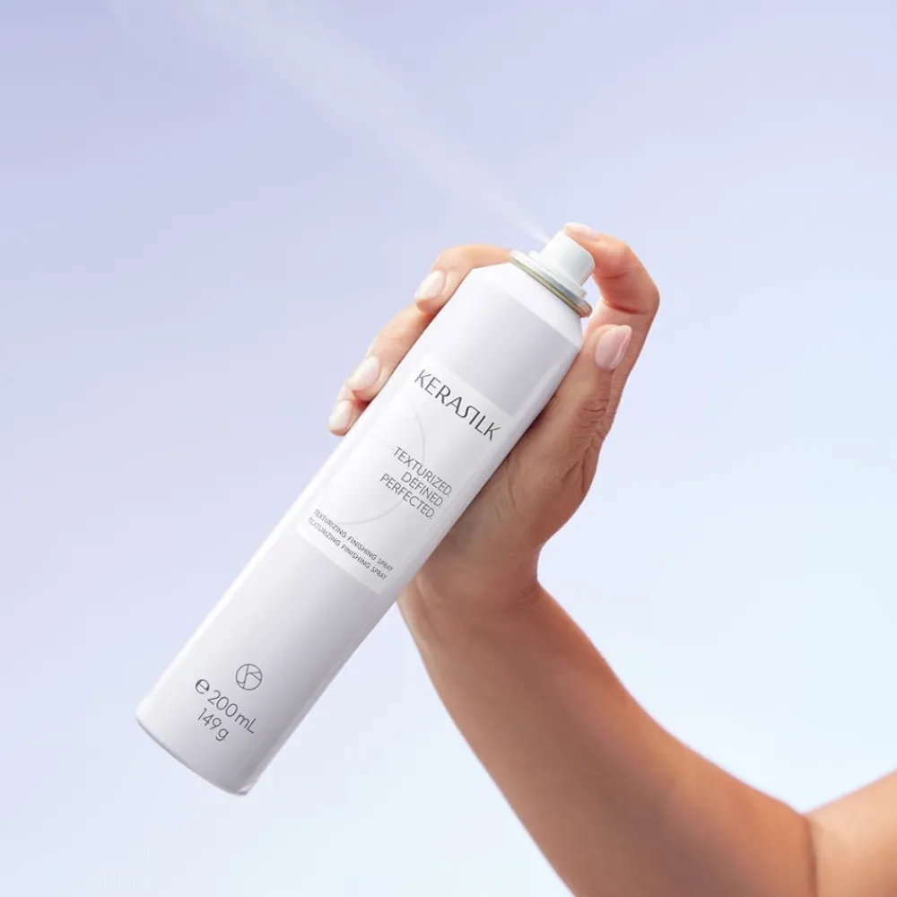 Das Kerasilk Texturizing Finishing Spray ist ein Hochleistungsspray mit Biomimetic SIlk und Blauer-Lotus- Extrakt. Die zu 100 % vegane Formulierung sorgt für eine satinartige Textur und flexiblen, umformbaren Halt – für bis zu 5-mal mehr Fülle vom Ansatz bis zu den Spitzen.