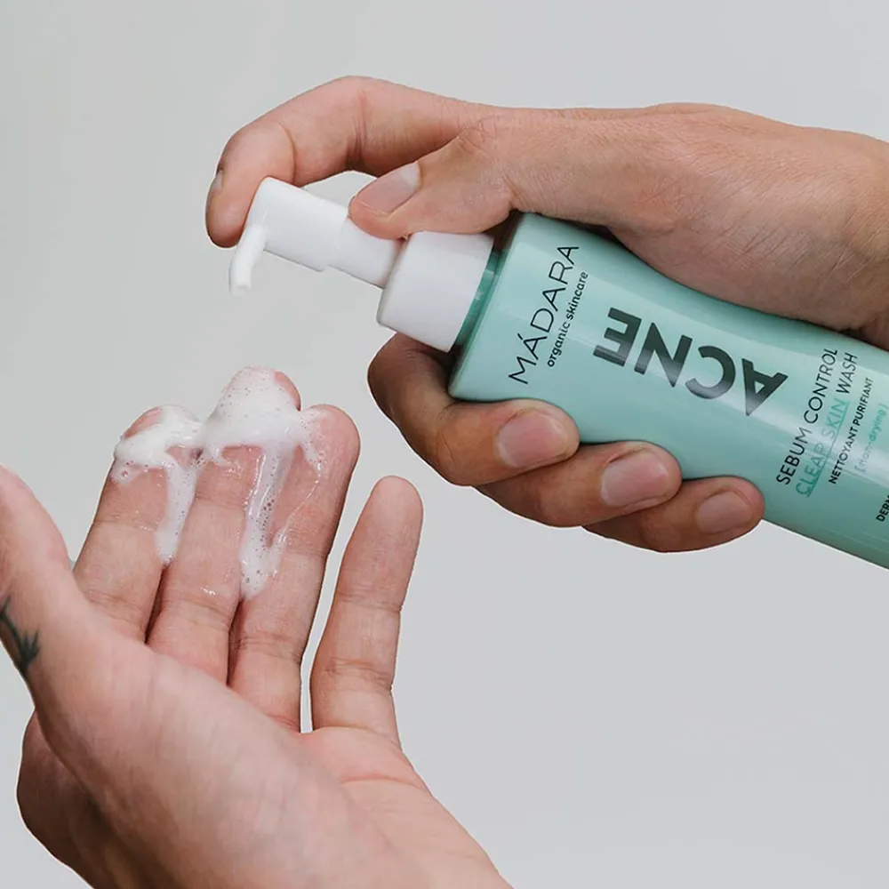 Anwendung des MÁDARA Acne Sebum Gesichtsreinigungsmittel