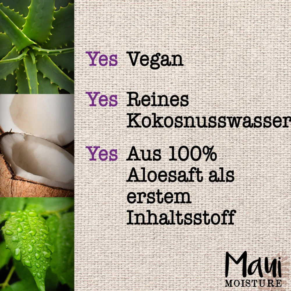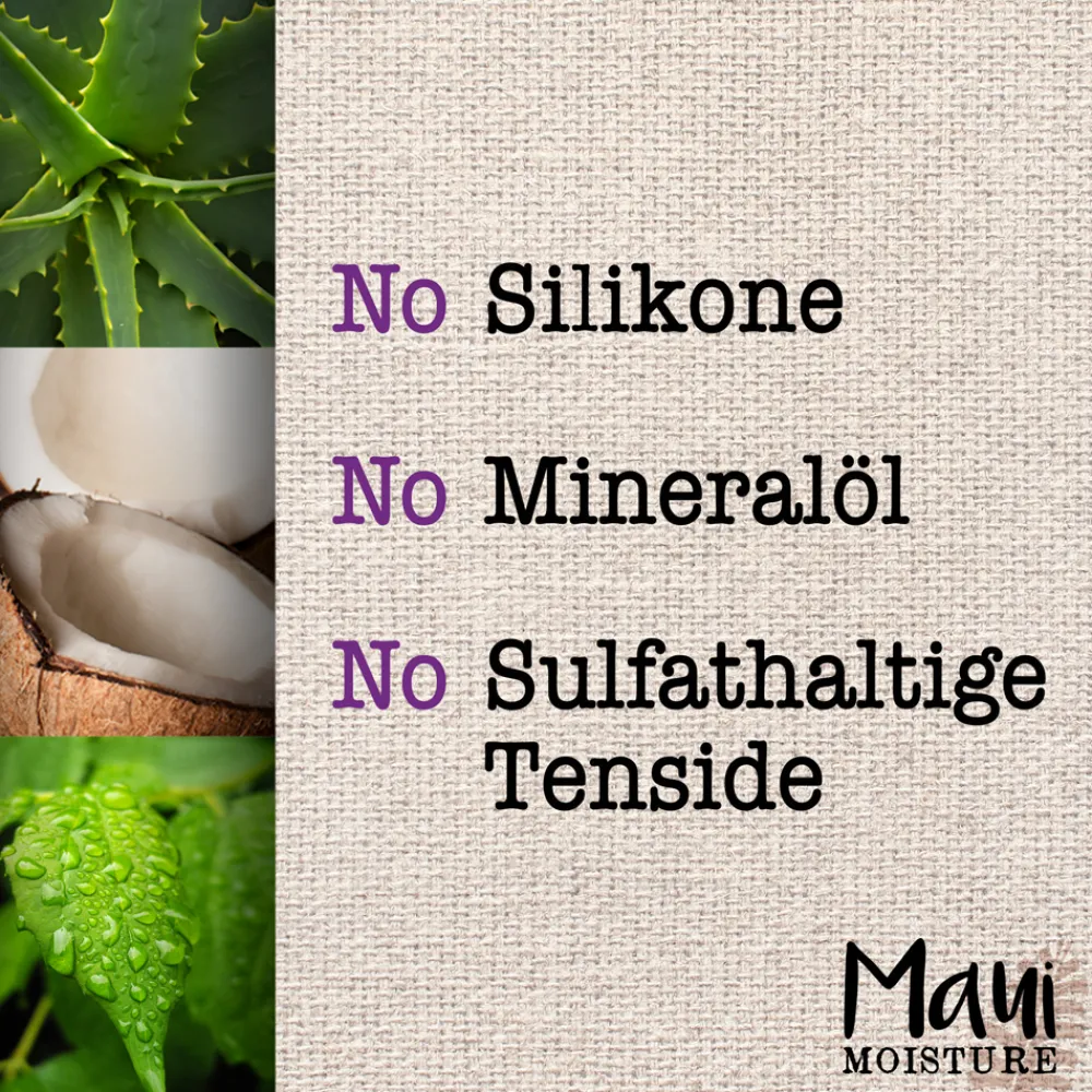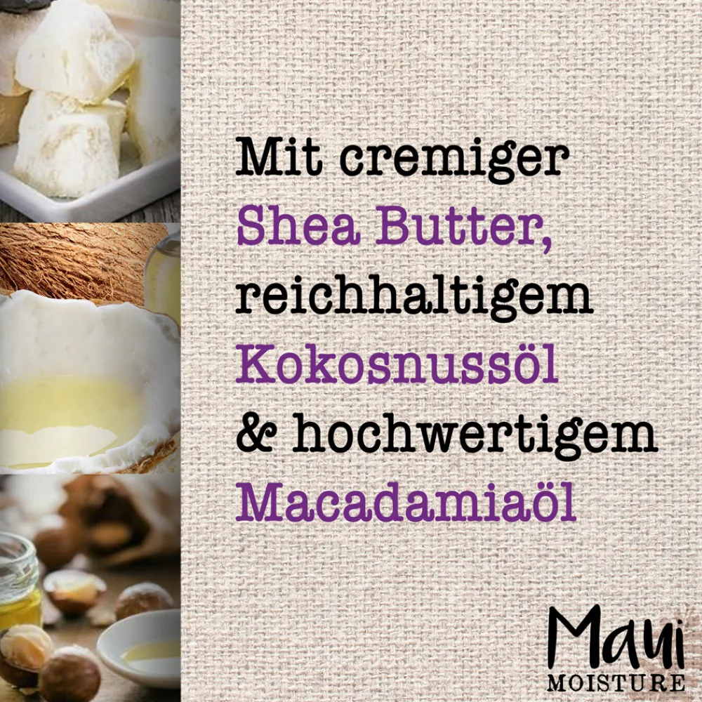 Der Maui Moisture Revive & Hydrate Shea Butter Conditioner ist ein Traum für jeden mit trockenem, geschädigtem oder überstyltem Haar. Diese nährende Feuchtigkeits-Pflegespülung ist mit cremiger Sheabutter sowie reichhaltigem Kokos- und Macadamia-Öl angereichert. Das Haar sieht wieder schön weich und gesund aus.