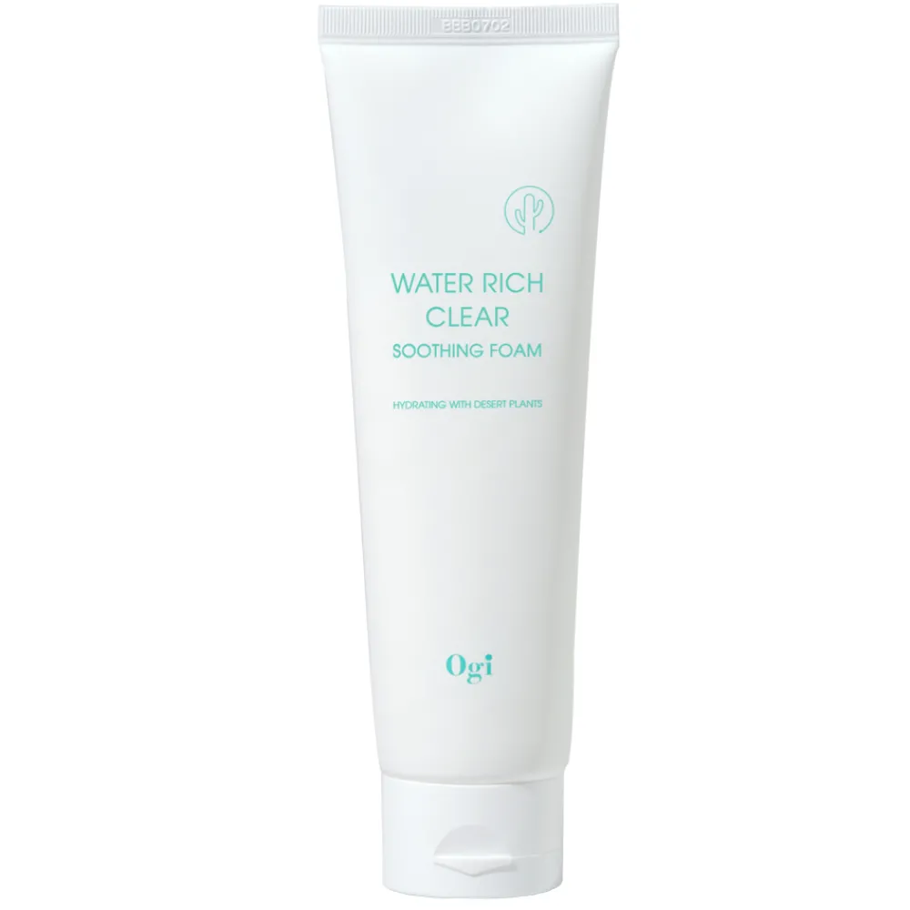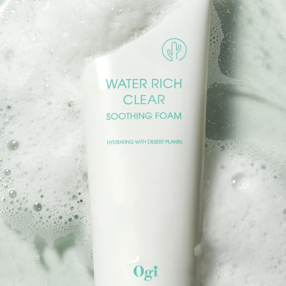 Der OGI Water Rich Clear Soothing Foam entfernt sanft, aber besonders gründlich Schmutz, Make-up, Sonnenschutz und abgestorbene Hautzellen. Die Produktformel basiert auf 100% natürlichen Tensiden, sanft exfolierende Zitronensäure und Kaktusfeigenextrakt. Die im Extrakt enthaltenen Polysaccharide lösen die Eiweißstruktur von Hautschüppchen und Verhornungen auf und entfernen diese besonders sanft. Dabei wird die Feuchtigkeitsbalance der Haut nicht zerstört, da hydrierende und beruhigende Wirkstoffe wie Cica, reizlindernde Madecassoside und feuchtigkeitsspendendes Glycerin enthalten sind. Nach jeder Anwendung hinterlässt das Produkt eine samtweiche und gepflegte Haut ohne Spannungsgefühle. Der dezente, natürliche Rosmarinduft rundet das Pflegeerlebnis perfekt ab. Für alle Hauttypen geeignet.