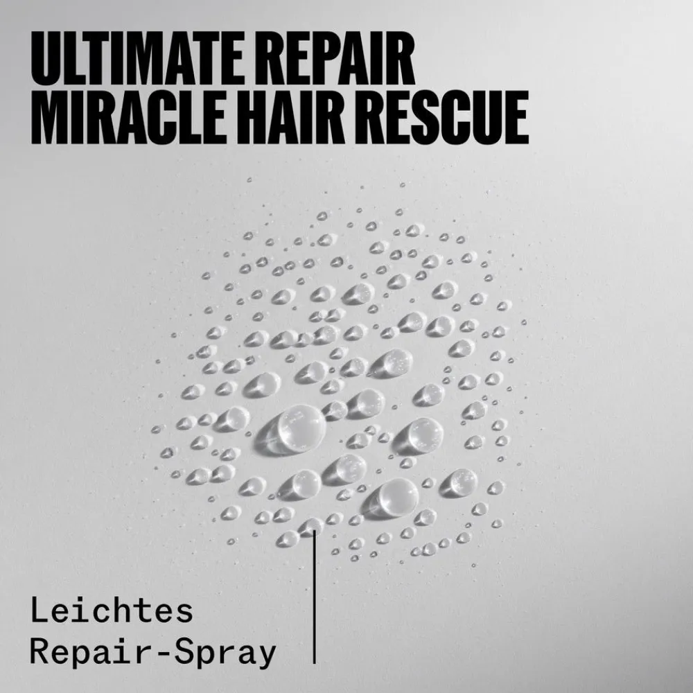 - Step 3: Behandeln & erneuern – Das Ultimate Repair Miracle Hair Rescue ist der Hero der Ultimate Repair Routine. Das Leave-In-Spray repariert Haarschäden in nur 90 Sekunden1 und sorgt für 99 % weniger Haarbruch, schwerelose Geschmeidigkeit und glänzenderes Haar nach jeder Anwendung7 . Die Anwendung ist einfach: Das handtuchtrockene Haar in drei Partien abteilen und das Miracle Hair Rescue vom Ansatz bis in die Spitzen 5-15 mal aufsprühen. Anschließend die Haare vorsichtig durchkämmen, 90 Sekunden einwirken lassen und wie gewohnt stylen. Die Faustregel der Hautpflege gilt auch für die Haarroutine: Nach dem Auftragen des Serums muss es erst einziehen, bevor die Feuchtigkeitspflege aufgetragen wird.