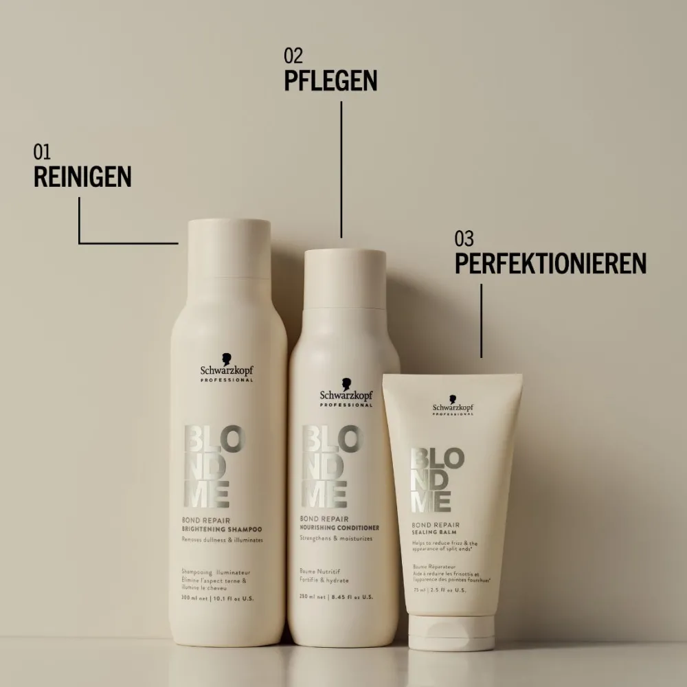 Tipp: Finde Deine maßgeschneiderte Pflege für stärkeres blondes Haar, indem Du die BLONDME Produkte kombinierst. Ergänze Deine perfekte Haarpflege-Routine mit derBondfinity Deep Repair Mask und dem Sealing Balm für bis zu 20x stärkeres Haar.