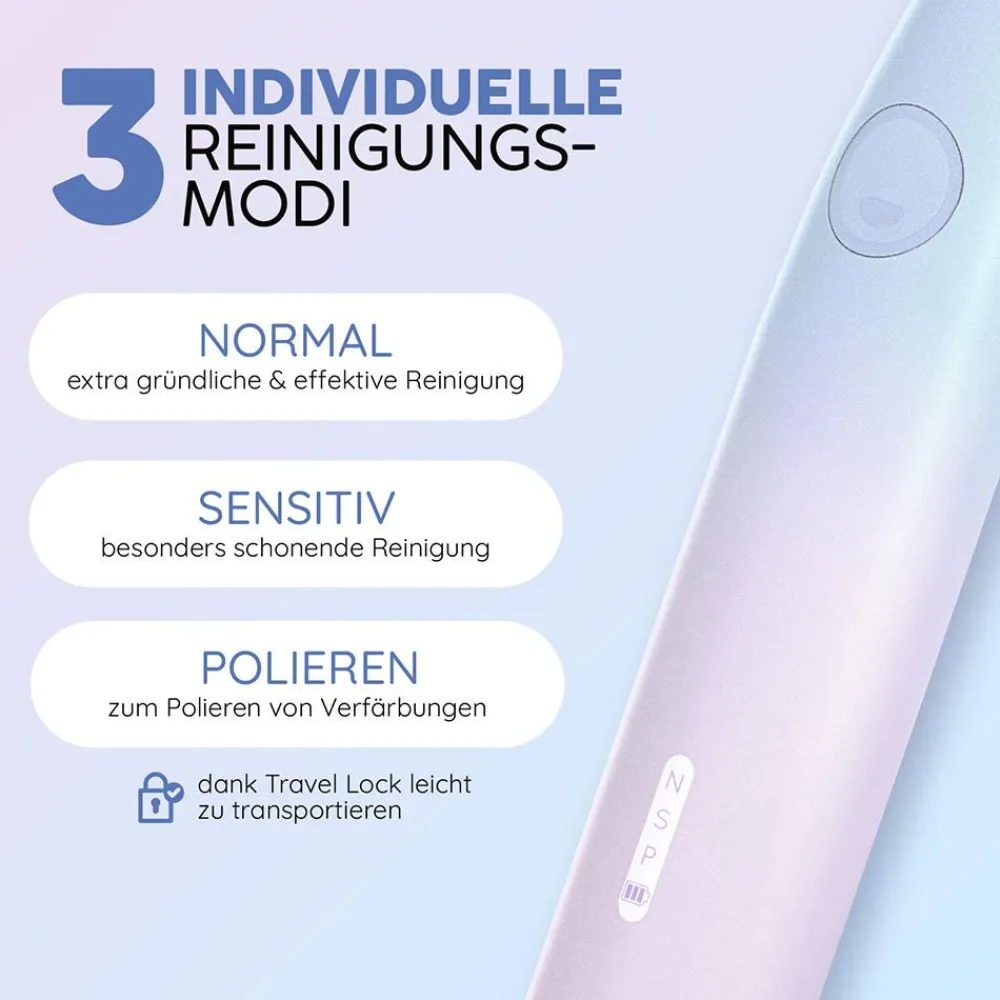 Schall-Zahnbürste – 40.000 hoch-effektiven Vibrationen, 3 individuellen Reinigungs-Modi & hochwertigen TripleBorsten