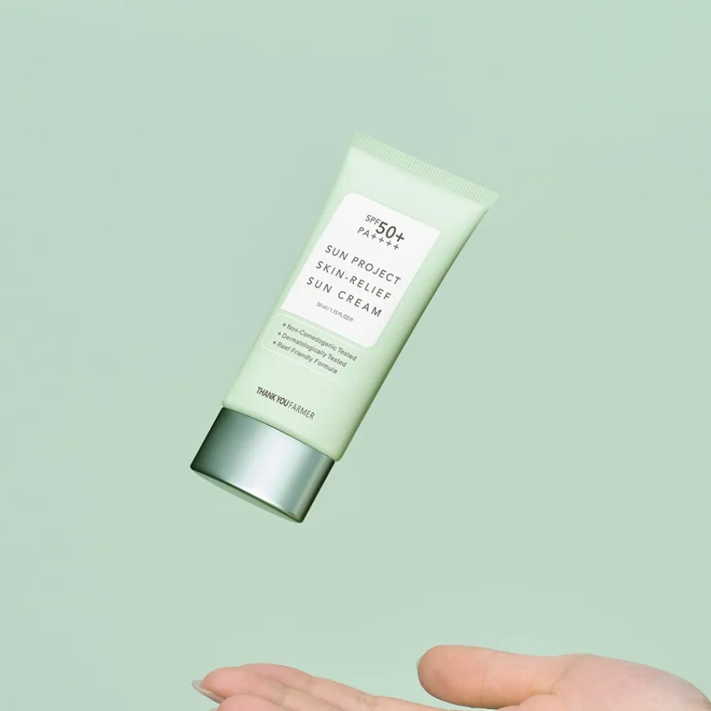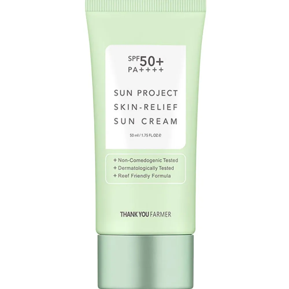 Die Thank You Farmer Sun Project Skin Relief Sun Cream SPF 50+ ist eine frische Sonnencreme, die weder klebt, noch weißen Schimmer hinterlässt und für alle Hauttypen geeignet ist, die von empfindlichen äußeren Reizen überfordert sind. Idealer Hauttyp: Alle Hauttypen, empfindliche Haut, Akne-Haut
