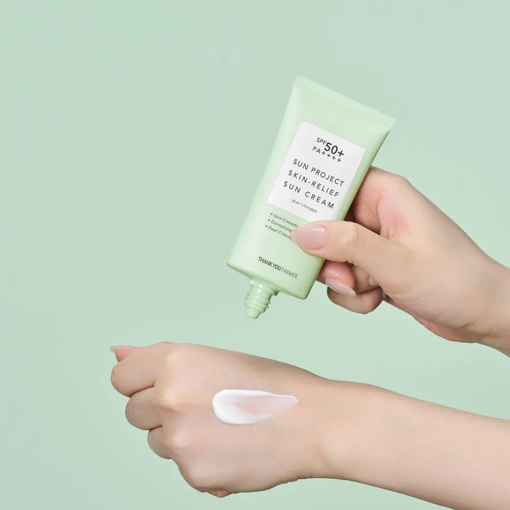 Anwendung von Thank You Farmer Sun Project Skin Relief Sun Cream SPF 50+