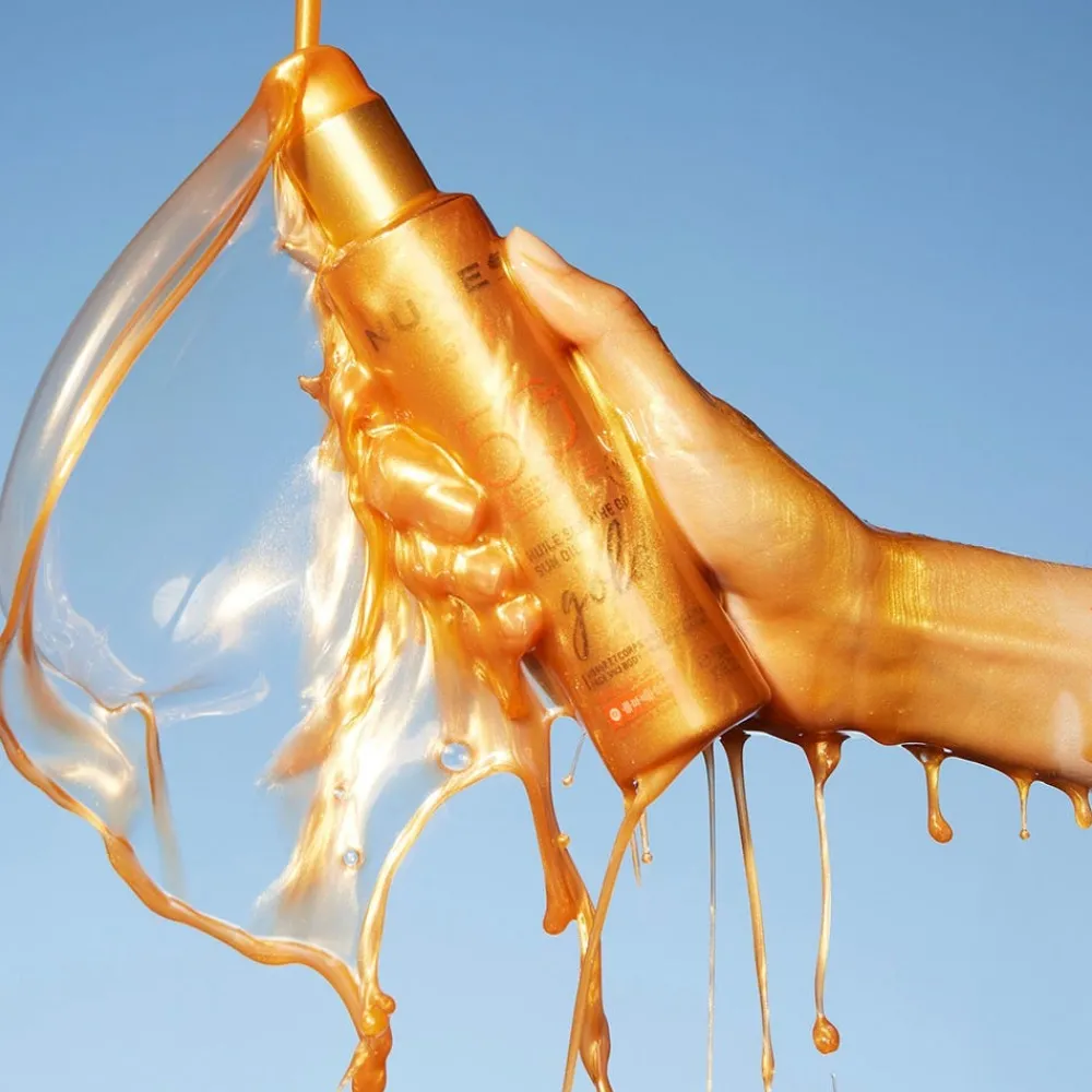 Das NUXE Sun Sonnenöl LSF 50 für Gesicht und Körper garantiert einen Breitspektrumschutz von UVA- und UVB-Strahlen sowie vor Blaulicht dank eines exklusiven, patentierten Filtersystems. Es bietet einen verstärkten Anti-Aging-Schutz und verhindert die Bildung von Pigmentflecken. Wasserbeständig und nicht komedogen, für alle Hauttypen geeignet. Die Glow-Textur mit Schimmerpartikeln ist 100 % natürlich und versorgt die Haut mit Feuchtigkeit, zieht schnell ein, ohne einen fettigen Film zu hinterlassen und verleiht den unterschiedlichsten Hauttypen ein unwiderstehliches irisierendes Gold-Finish. Der Urlaubsduft aus Süßorange, Tiaré und Vanille betört die Sinne und ist eine unwiderstehliche Einladung, den Sommer zu genießen.