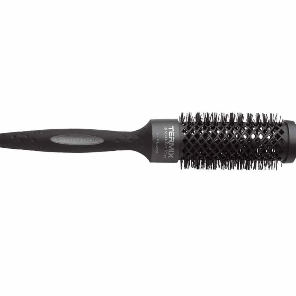 Bürstenkörper Teflon-Beschichtet: Verteilt die Warmluft des Haartrockners perfekt und gleichmäßig über den gesamten Bürstenkörper. Verhindert Rückstände von Stylingprodukten wie Spray, Schaum, Gel etc. auf der Bürste.