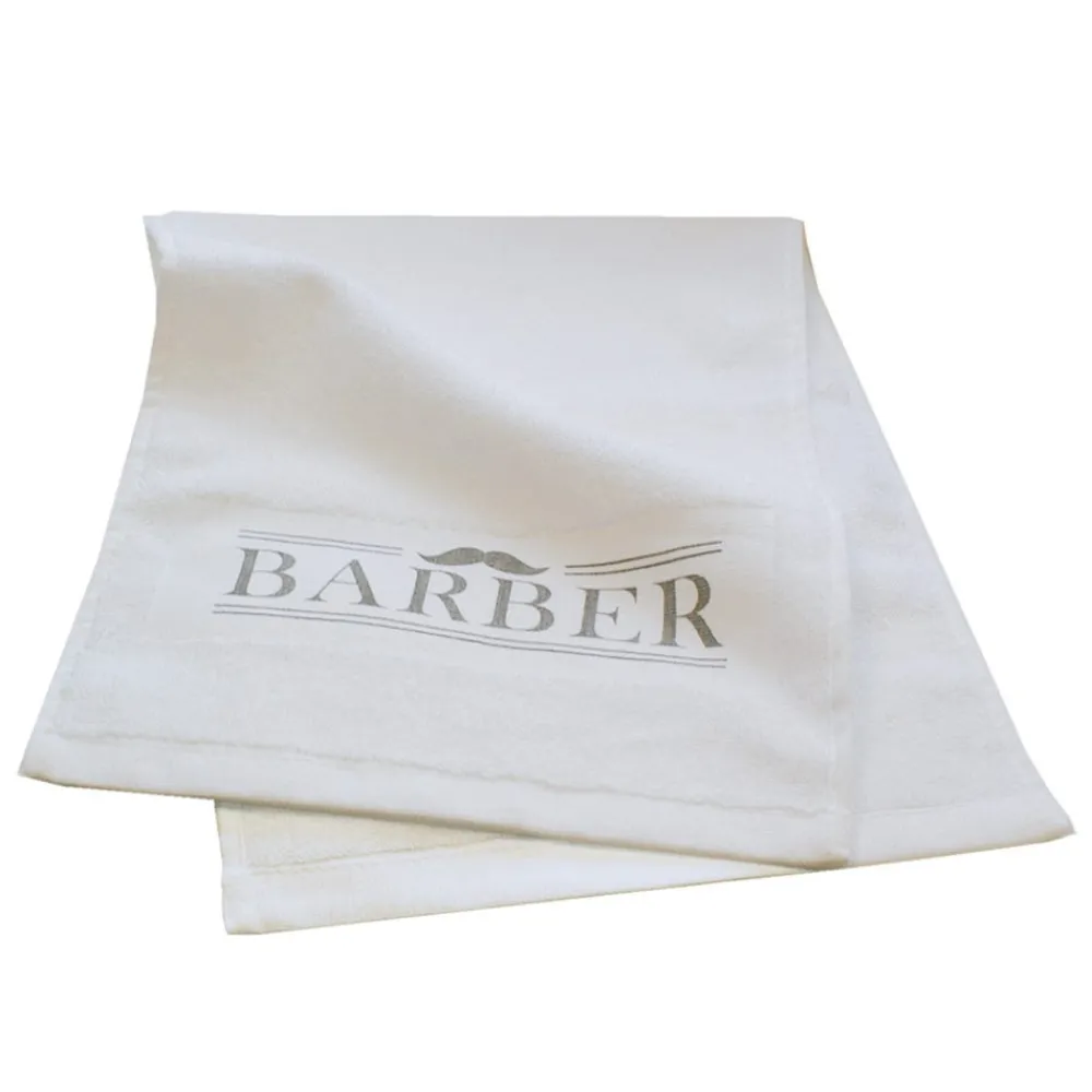 Das Trend-Design Barber Towel Rasierhandtuch weiß eignet sich perfekt, um die Hände zu trocknen oder eine warme Kompresse zu machen, welche die Pooren des Kundens vorm rasieren öffnet.