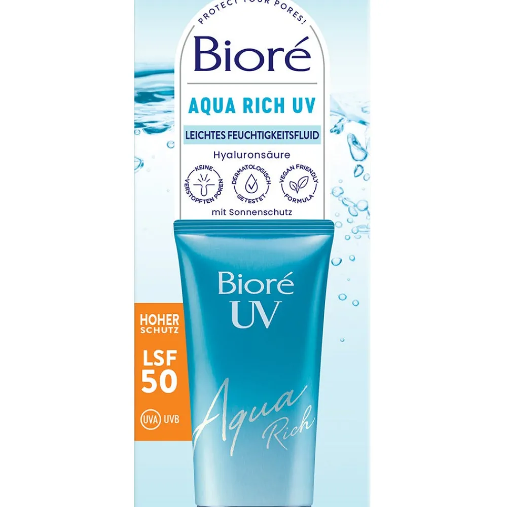 Das BIORÉ AR UV Leichtes Feuchtigkeitsfluid LSF 50 ist wasserbasiert, leicht zu verteilen und zieht sofort ein. Die nicht fettende Formel, stammt von den Hautpflege-Experten der Marke Bioré aus Japan. Angereichert mit Hyluronsäure zur Feuchtigkeitspflege, schützt das Fluid vor UV-, UVA- und UVB-Strahlen und funktioniert hervorragend unter Make-Up. Die Formel zieht schnell in alle Hauttöne ein und hinterlässt für ein unsichtbares Finish und keine weißen Rückstände. Dermatologisch getestet.