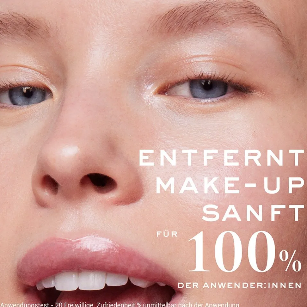 - 95% der Freiwilligen finden, dass die Haut sanft gereinigt und dass selbst hartnäckiges Make-up entfernt wird.